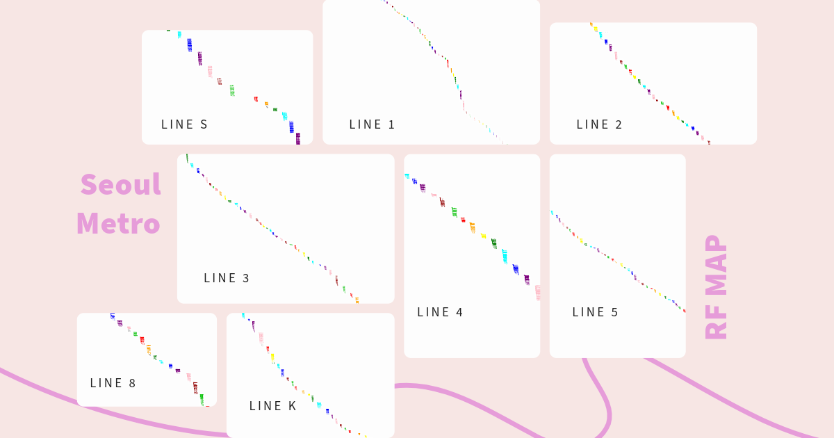 AIMIFY의 Metrospace RF Mapping 기술은 지하철 구간 및 도심 실내 공간에서 정밀 RF맵을 구축하는데 사용됩니다. 이 전파맵은 다양한 무선 전파 및 신호 데이터를 분석하여 통신 품질 개선 및 위치 기반 서비스에 활용됩니다